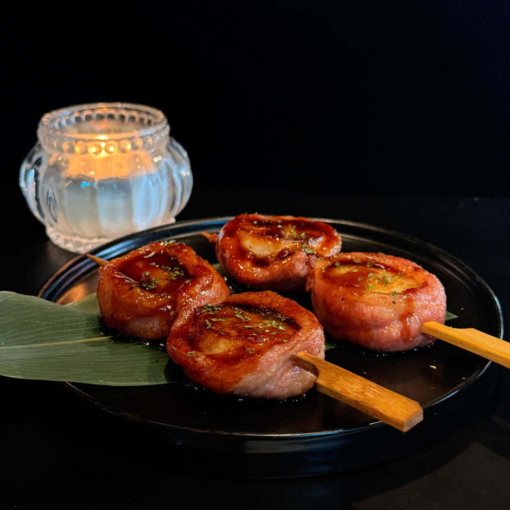 Savor the perfection of thinly sliced wagyu beef wrapped around fresh ingredients